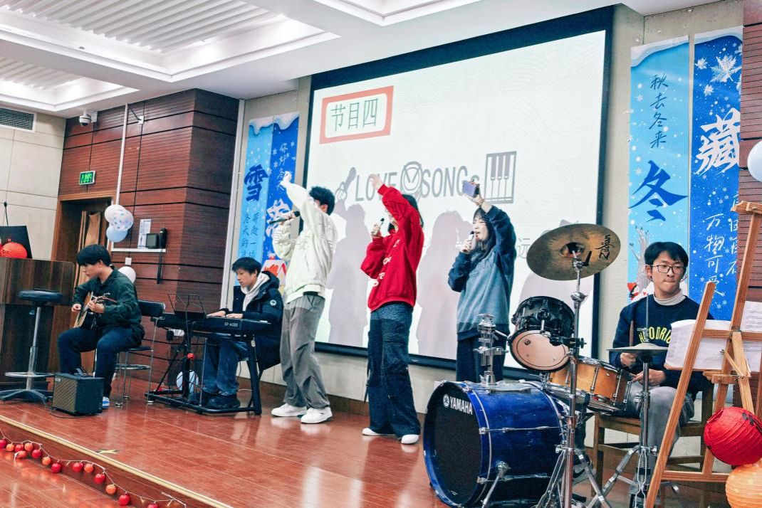 马欣冉、方子愉、徐黄驭、王驰远、李睿扬、贾鑫书、陈思豪同学组成乐队,带来歌曲串烧《Love Songs》,通过一首接一首耳熟能详的经典旋律,丰富而又生动的舞台互动,顺利地将联欢会推向了高潮。