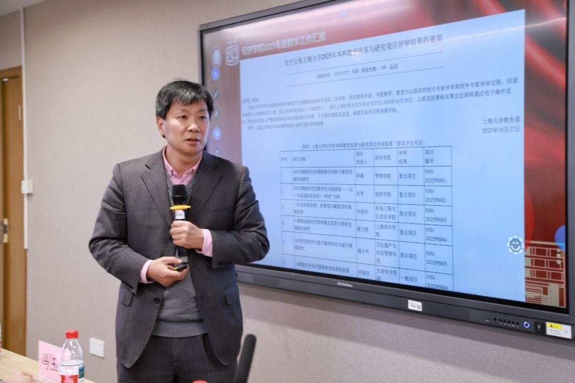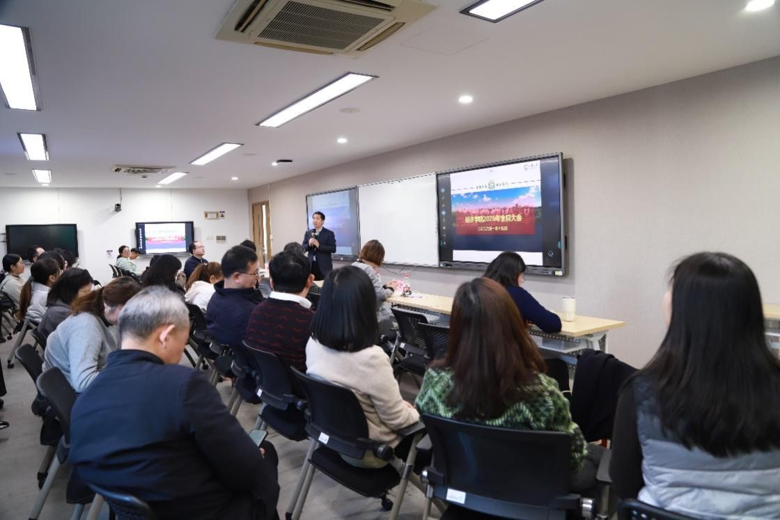随后,尹应凯以“最经济”为工作汇报主题,对学院2025年工作进行回顾。就人才培养、招生就业、科学研究、学科建设、国际交流等方面全面复盘了学院2025年工作情况。之后,还提出了过去一年学院工作中的不足之处和完善改进的方向,强调践行“爱生如子”理念,在2026年,全体教职工将以更高标准推动学院高质量发展。