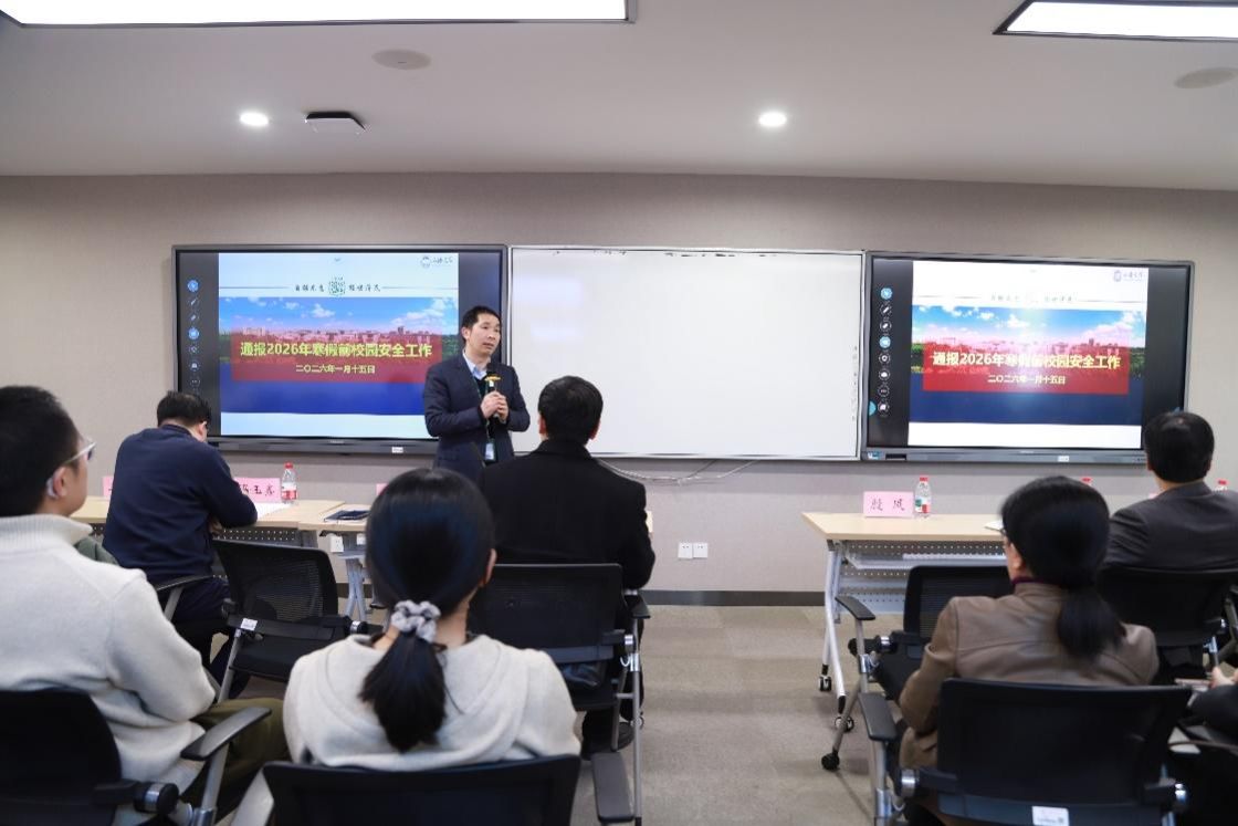 最后,尹应凯对2026年寒假前校园安全工作进行通报,强调学院老师要关注假期留校学生在校安全问题,做到及时关心学生动态并保持沟通交流;另外,办公室安全和外出交通安全等方面也要始终绷紧安全弦,切实增强安全意识。