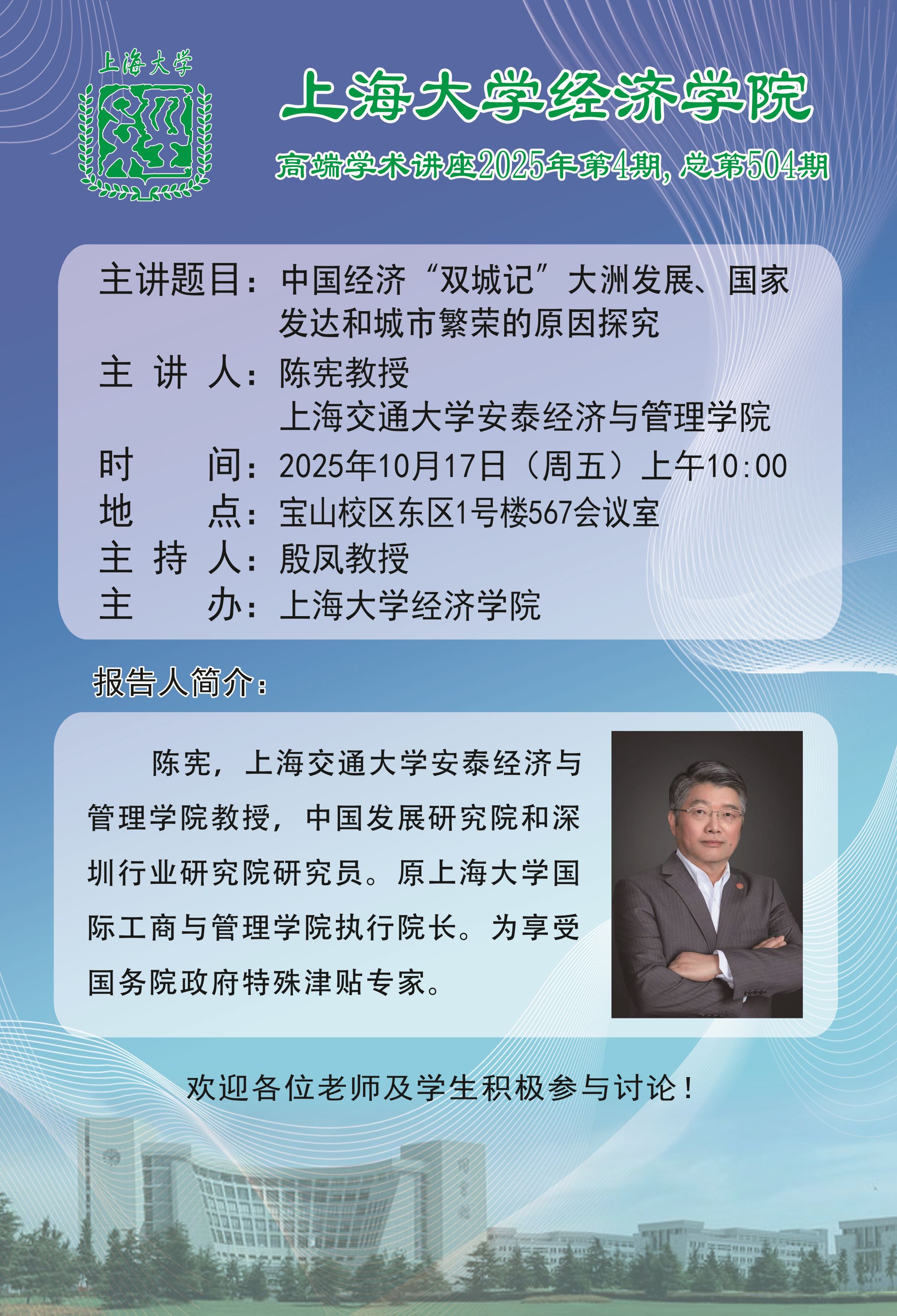 【学术讲座】中国经济“双城记”大洲发展、国家发达和城市繁荣的原因探究