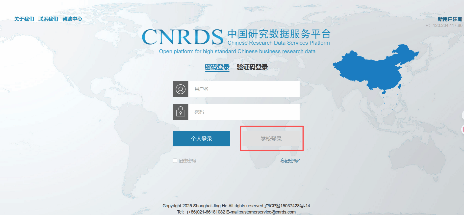CNRDS中国研究数据服务平台 【数据库简介】中国研究数据服务平台 (Chinese Research Data Services Platform, CNRDS)是一个高质量、开放式、平台化的中国经济、金融与商学研究的综合数据平台。CNRDS 的宗旨在于借鉴 WRDS 等国外一流商学院打造的数据平台,构建中国特色的研究数据资源,促进中国研究数据的规范化、平台化、国际化,继而推动中国研究向纵深化、精细化方向发展。 【访问地址】https://www.cnrds.com/ 上海大学ip段内点击“学校登录”可直接进入使用,目前仅有基础库使用权限