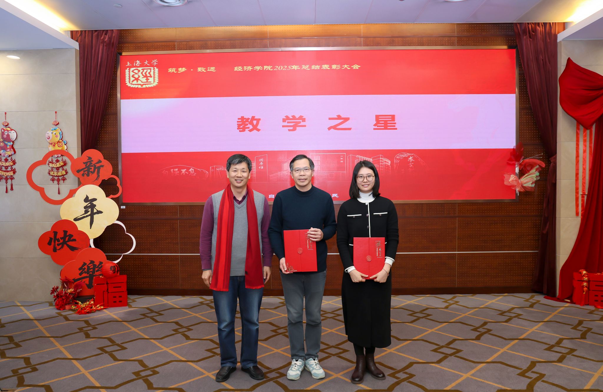 接着,经济学院副院长毛雁冰、刘康兵、谭静分别为2025年度“经院之星”和“年度人物”颁奖,对在教学、科研、管理等领域表现卓越的16位教师予以表彰,以此激励全体同仁追求卓越、勇攀高峰。