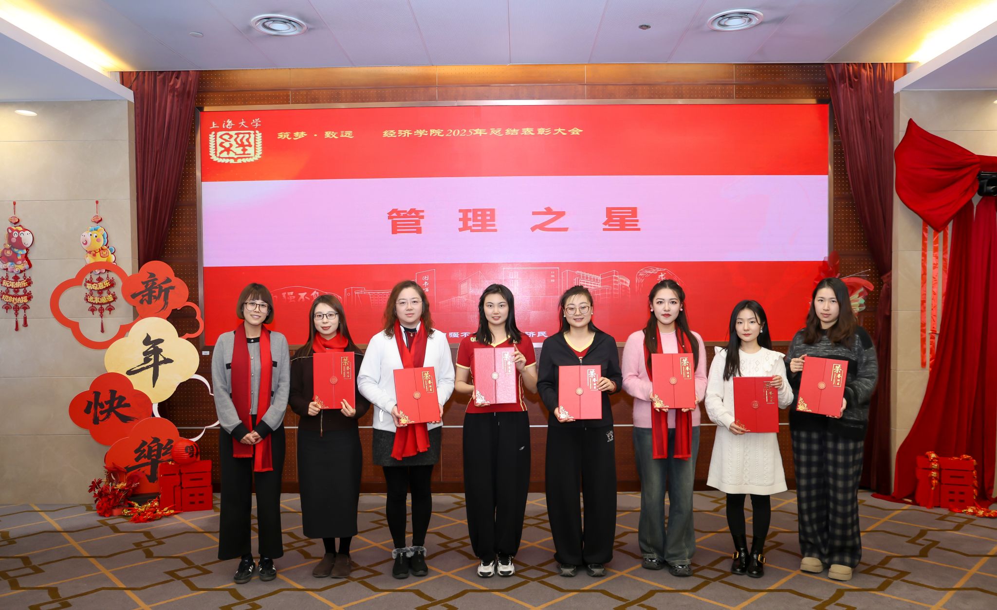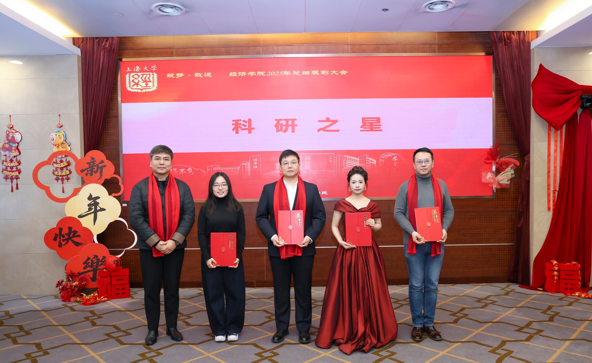 2026年1月9日下午,“筑梦·致远”上海大学经济学院2025年度总结表彰大会在宝山校区乐乎新楼2号楼思源厅举行。东方证券客群发展总部总经理助理邢海亮,东方证券上海分公司副总经理赵军,在学校其他部门任职的学院教师陆甦颖、陈秋玲,文荟书院院长、经济学院原院长沈瑶,经济学院战略管理委员会主任聂永有,上海市统计学会副会长、经济学院校外导师陈新光,新疆生产建设兵团美协原秘书长、泮池书院美育导师潘先纲,与经济学院领导班子、师生代表欢聚一堂,共忆耕耘岁月,共绘发展蓝图。本次大会立足学校“双一流”建设新阶段,紧扣“十五五”规划开局部署,既是对过去一年学院在学科建设、人才培养与教学科研的系统复盘,更是凝聚经院力量、迈向高质量发展新征程致远之旅的再出发。